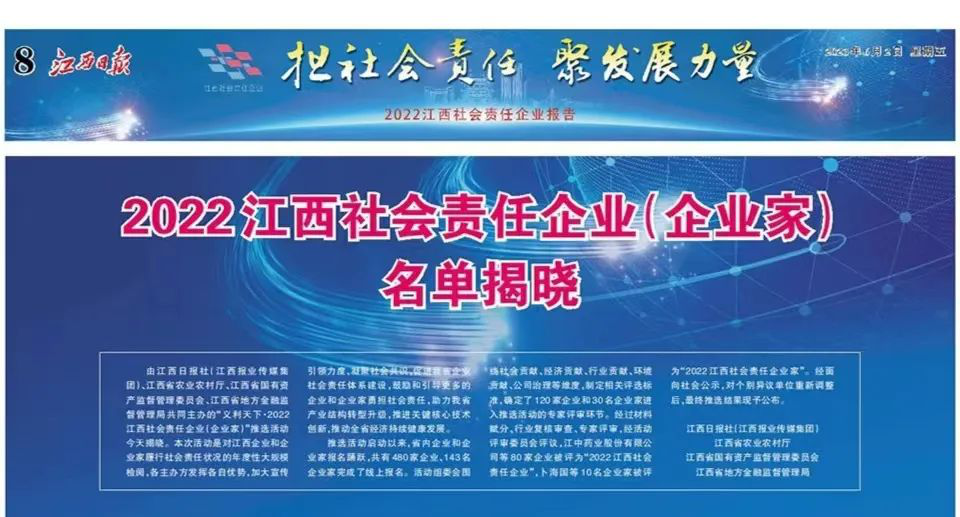 6月2日,,,,,,,由江西日报社(江西报业传媒集团)、江西省农业农村厅、江西省国有资产监视治理委员会、江西省地方金融监视治理局配合主理的“义利天下·2022江西社会责任企业(企业家)”推...
