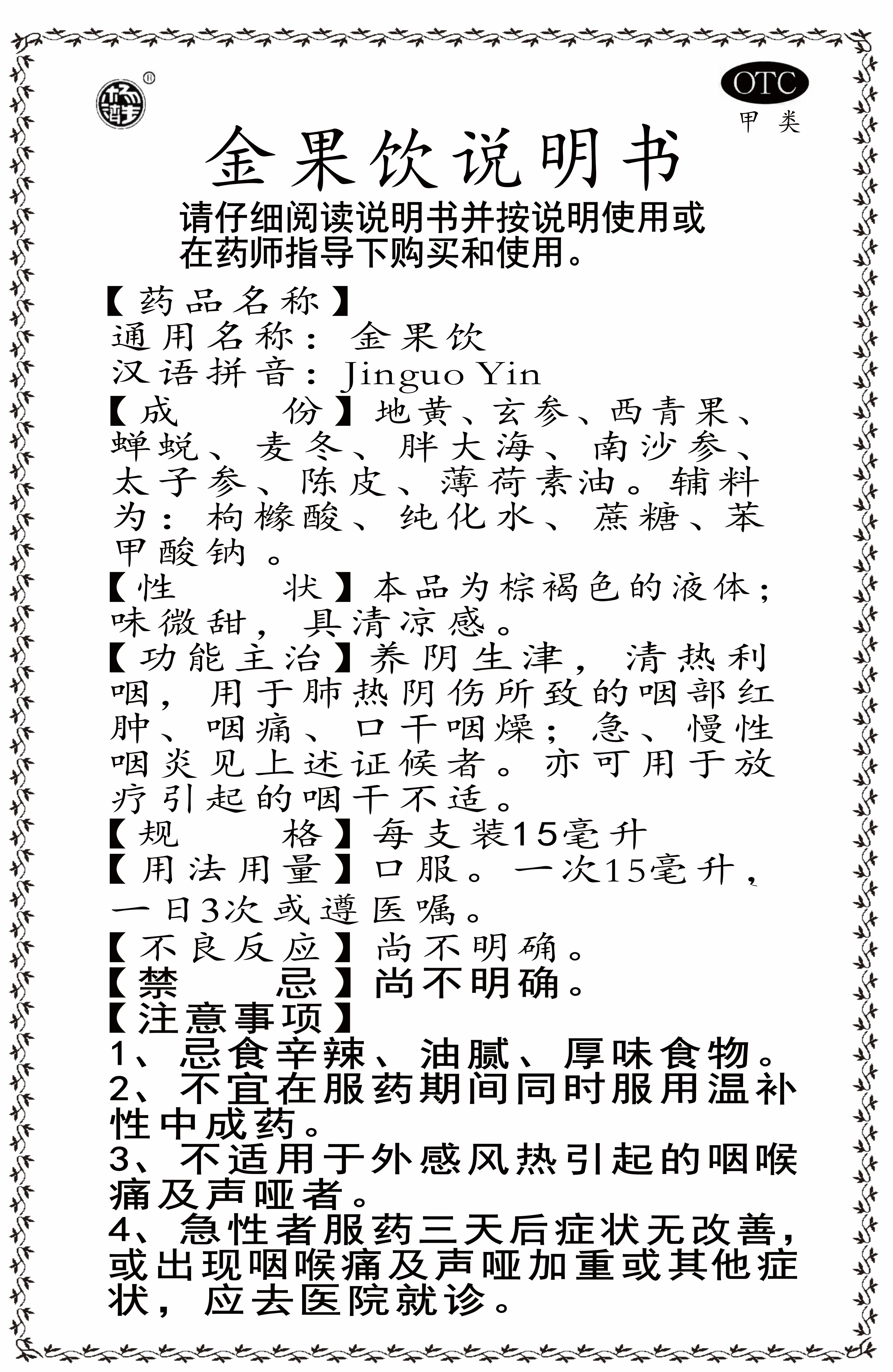 养阴生津_,_,_,_,_,,_,_,清热利咽_,_,_,_,_,,_,_,用于肺热阴伤所致的咽部红肿、咽痛、口干咽燥;_;_;_;_;_;急、慢性咽炎见上述证候者_。_。_。。_。亦可用于放疗引起的咽干不适_。_。_。。_。规格:15ml×10支